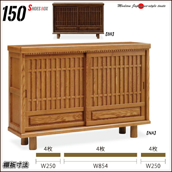 下足箱 格子 靴箱 和風 150幅 大川家具 ブラウン ナチュラル 下駄箱 ロータイプ シューズボックス 玄関収納 高級 国産 下足入れ シューズラック 無垢 【送料無料】(北海道・東北・沖縄・離島は別途見積)